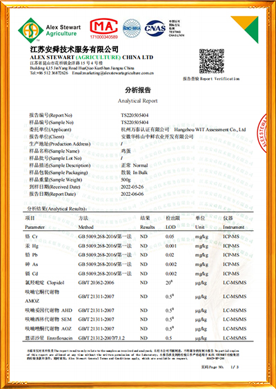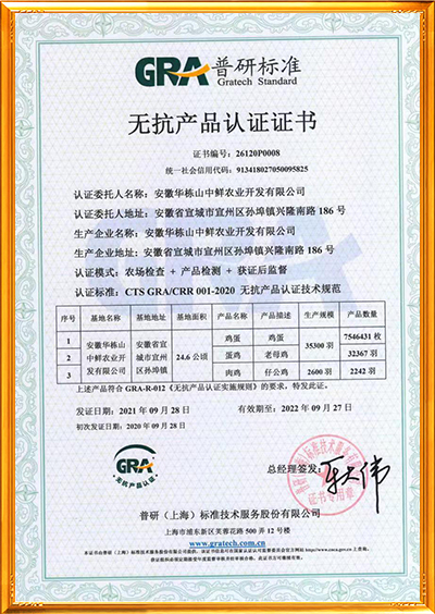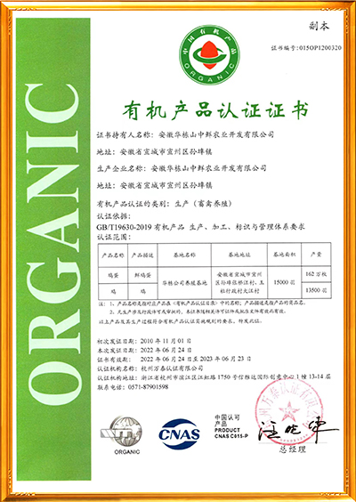 公司连续生产绿色食品鸡肉鸡蛋 18 年,连续生产有机鸡肉鸡蛋 13 年,并拥有有机认证、绿色食品认证和无抗认证